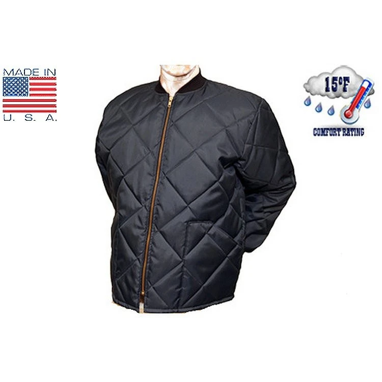 - Rib-knit cuffs provide a snug fit to reduce draft